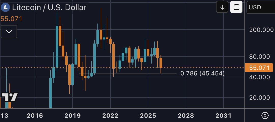 Litecoin (LTC) 3-month chart The lows are higher than the 2018 bear market bottom and the lows of the 2020 crash. The price is hovering near key support levels. The RSI has hit an all-time low. This is a good time to buy and hold for the long term.