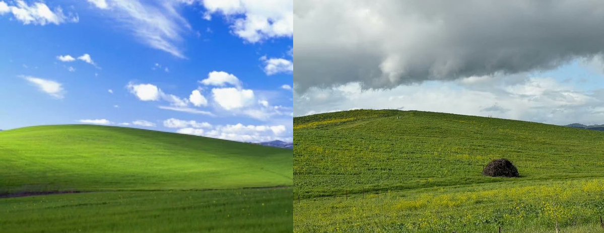 "The human brain automatically recalls XP memories when it sees 'green hills and sky.' Your reaction to nostalgia is practically a conditioned reflex.