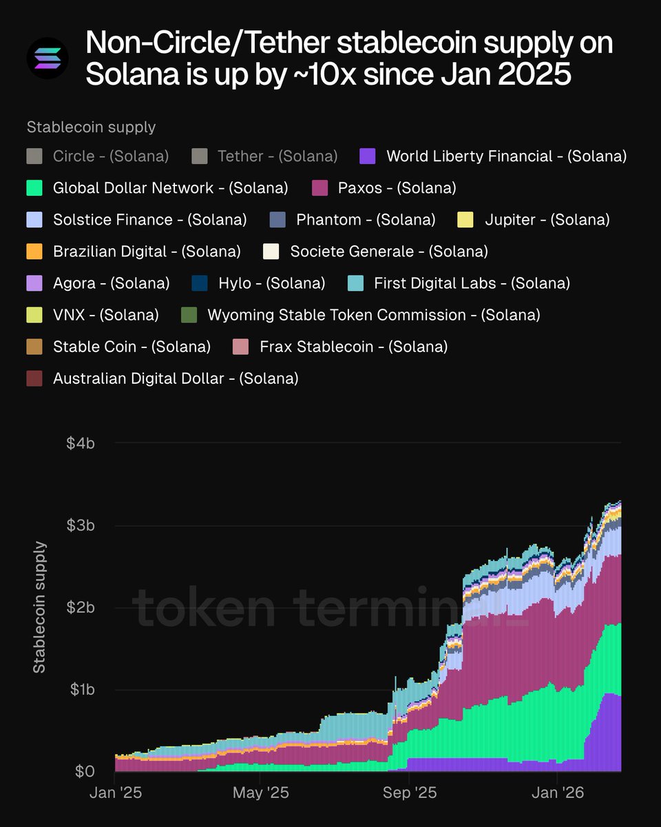 Breaking News: Since January 2025, the supply of non-Circle/Tether stablecoins on the @solana platform has increased approximately tenfold. Please stay tuned for charts and further updates 👇