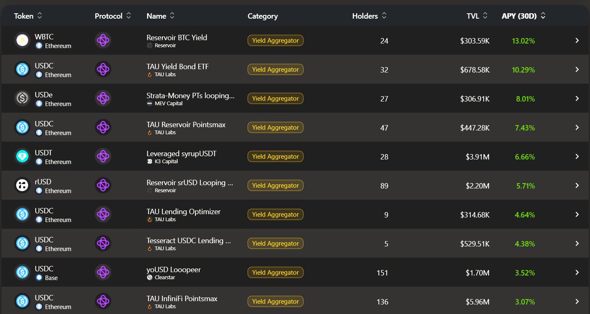 Here's a quick look at the top 5 performing vaults on @ipor_io (data from @vaultsfyi). The "30-day average" is taken from the vault's TVL-weighted "average dollar" calculation method, designed to more accurately track annual interest rates (APR) rather than just changes in net asset value (NAV). The "current annual interest rate" is taken directly from IPOR. ► @reservoir_xyz BTC Arbitrage Current Annualized Yield: 8.14% 30-Day Average Yield: 12.8% Strategy: Collateralize BTC, borrow USDC, and mine leveraged wsrUSD ► @628Labs TAU Yield Bond ETF Current Annualized Yield: 7.22% 30-Day Average Yield: 10.29% Strategy: Optimize a Pendle stablecoin ETF portfolio ► @strata_markets PT Looping Current Annualized Yield: 4.27% 30-Day Average Yield: 8.53% Strategy: Maintain leveraged srUSDe PT Note: MEV Capital is an Atomist currently experiencing a difficult period. ► @628Labs Reservoir “Pointsmax” Current Annualized Yield: 8.62% 30-Day Average Yield: 7.43% Strategy: Optimize wsrUSD Cycle, targeting points rather than simply the annualized return (APR) (while striving to maintain a positive APR) ► @k3_capital LeveTOP 5 best@maplefinance Current APR: 7.38% 30-day average return: 6.67% Strategy: Optimizing leveraged syrupUSDT trading on Aave and Morpho platforms Note: Passionate about high-quality indicators (Vaults) and Ipor Ambassador