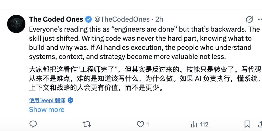 The economic reality brought about by this shift is harsh:Companies that use AI merely to speed up developers' development are actually optimizing an outdated model.In contrast, companies that directly utilize AI as developers will operate in this new economic reality. Once AI-driven companies significantly outpace human-driven companies in terms of speed, this transformation will no longer be an option, but a necessity for survival.